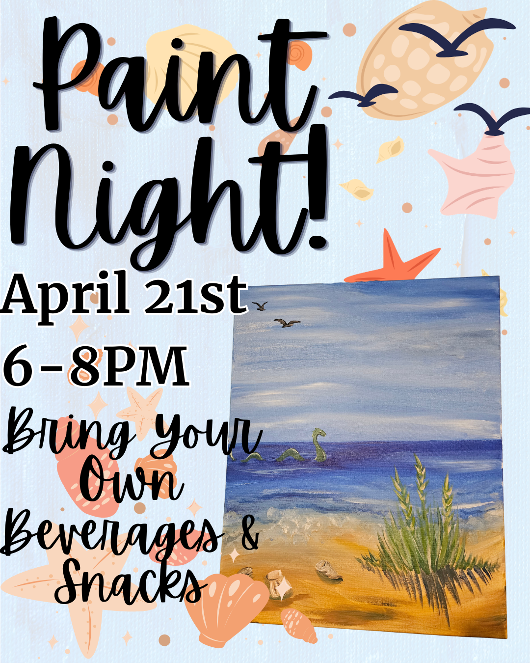 It’s April and we’re ready for spring! Join us for a night of creativity and good company as we welcome the warmer weather with this beachy painting (sea monster optional!)