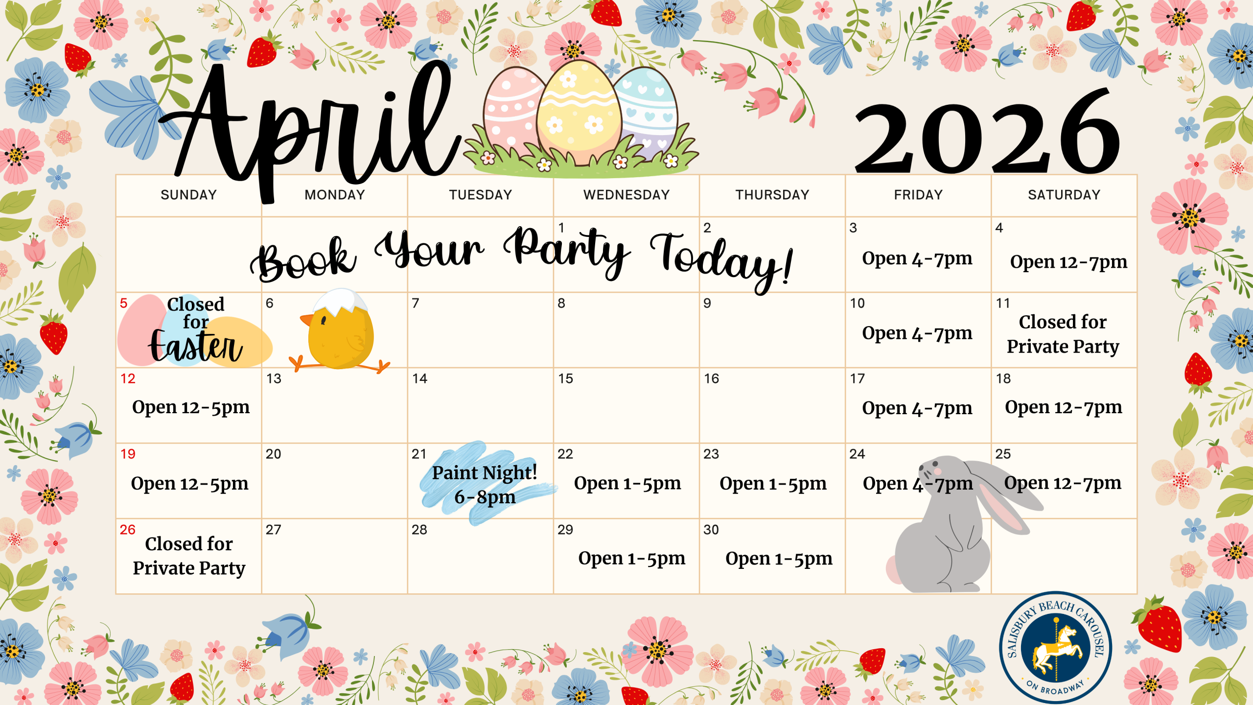 This adult only event (18+) is a blend of creativity, fun, and community spirit, all set against the dazzling backdrop of our restored historic carousel in our stunning event space. Come for the paint, stay for a ride, and make memories that’ll go round and round!